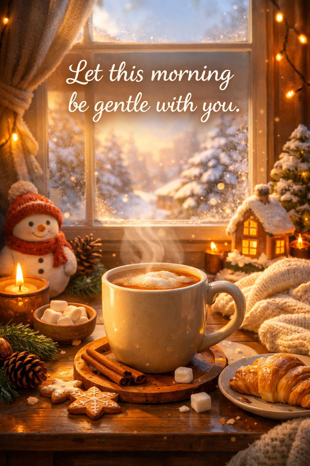 There’s something magical about winter mornings with coffee. As a longtime fan of aesthetic postcards and cozy visuals, I honestly believe these moments deserve to be captured, saved, and shared. A steaming mug, soft knitted blankets, pale winter light on the window, and that quiet pause before the day begins — this is the heart of hygge.