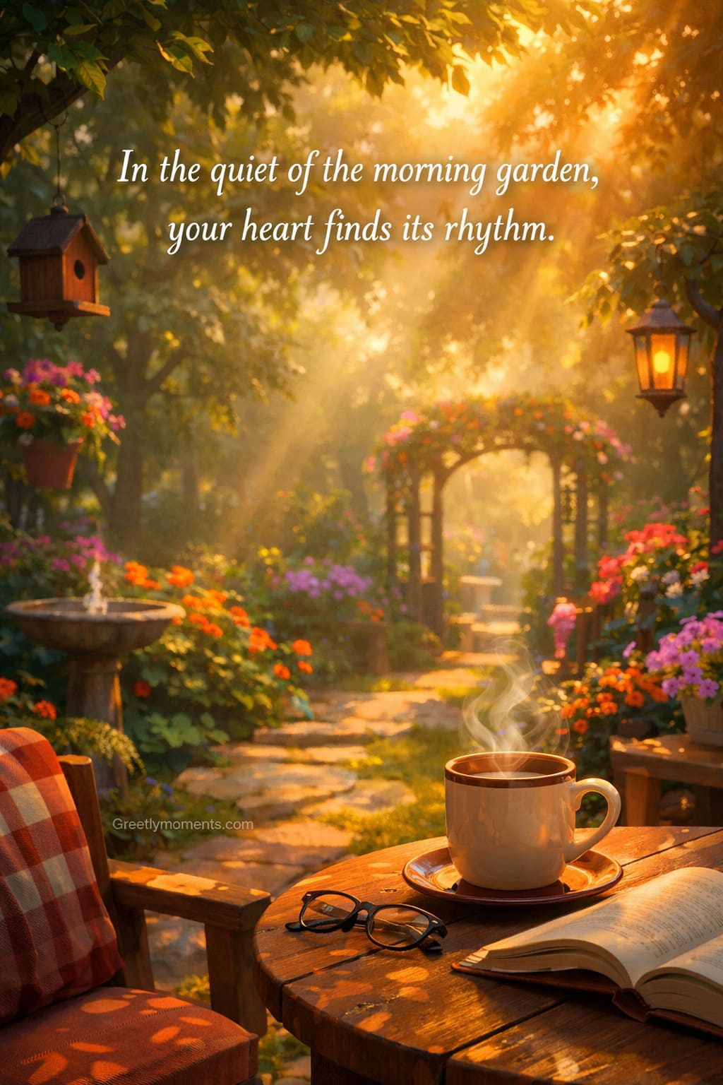 - “In the quiet of the morning garden, your heart finds its rhythm.”