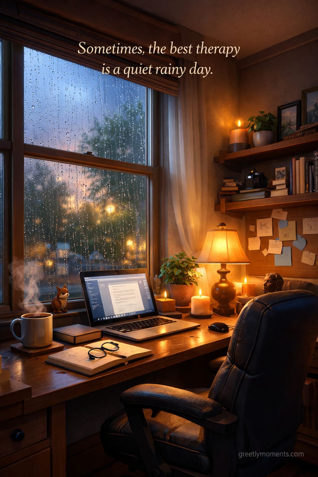 20 Heartwarming Quotes & Wishes for a Cozy Home Office Morning with Rainy Window Views