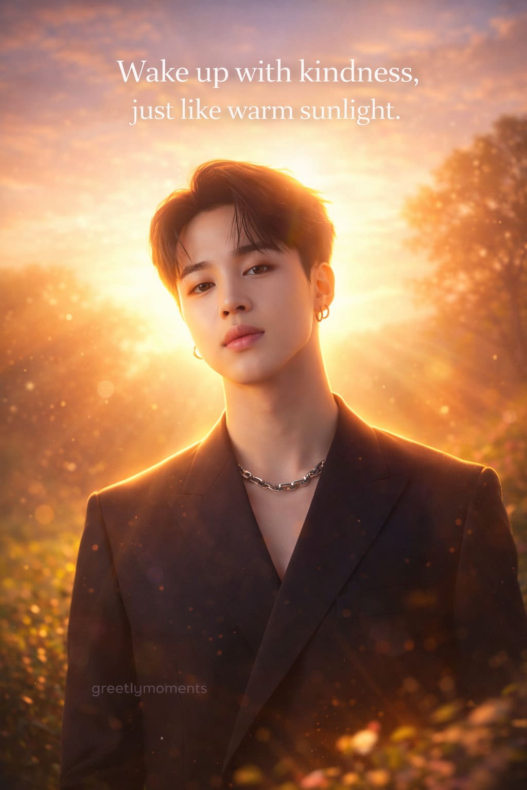 There’s something magical about mornings filled with soft sunlight—and when I think of that gentle warmth, I always think of Jimin from BTS. His smile feels like morning light, his voice like a calm sunrise, and his presence brings a peaceful, comforting vibe that fans love to share in greeting cards and aesthetic posts.