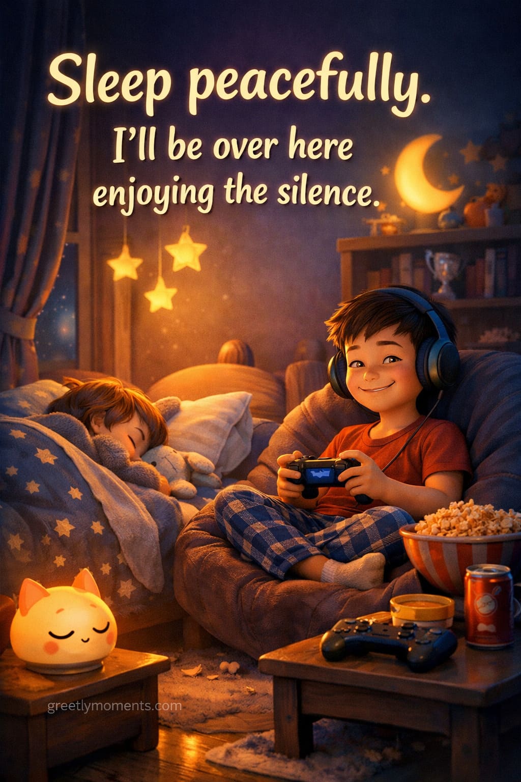 The best sarcastic goodnight quotes for siblings are funny because they’re built on history. Shared bedrooms, shared secrets, shared fights over the TV remote — all of it turns into material for jokes.