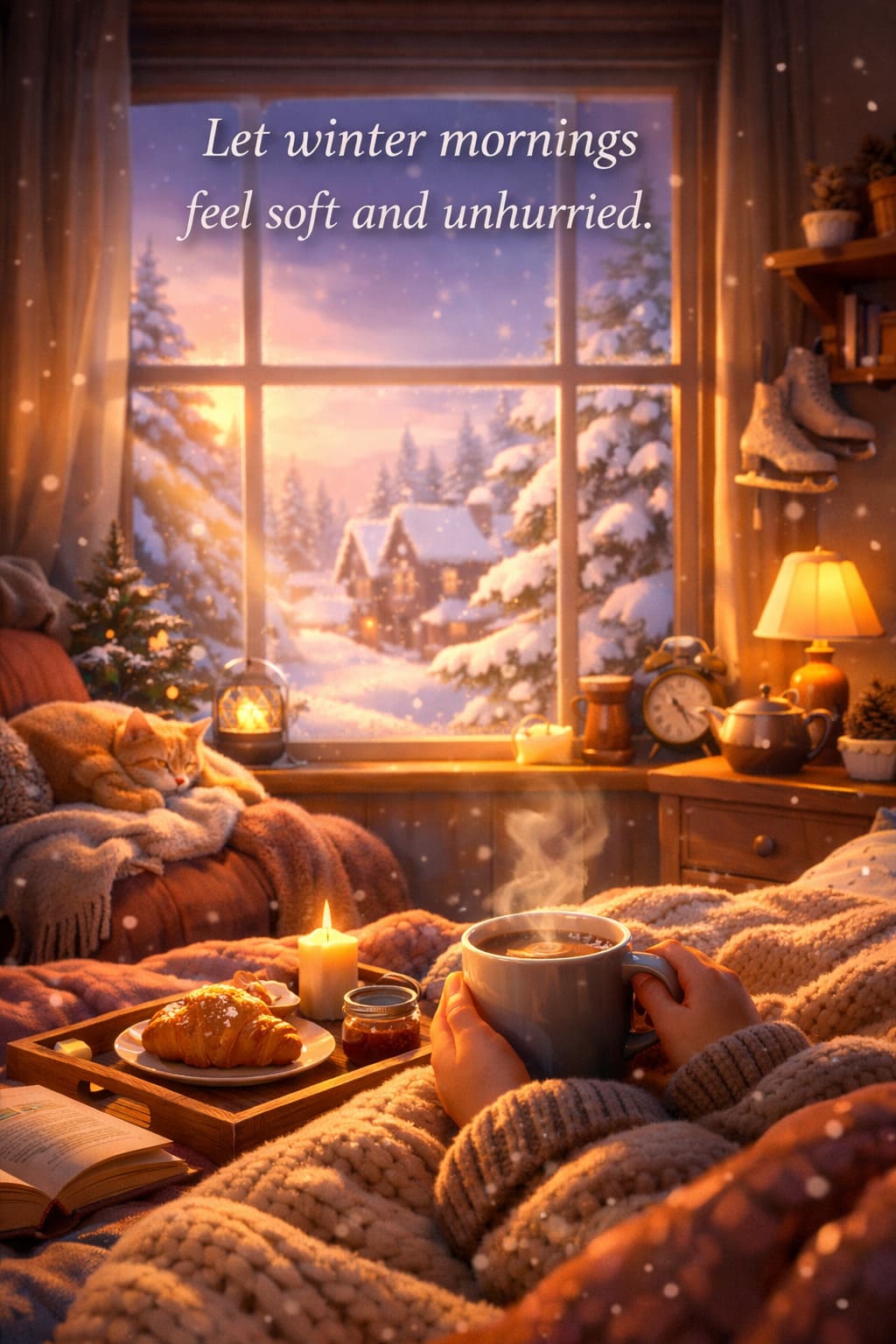 This aesthetic works perfectly for winter greeting cards, digital postcards, Pinterest visuals, and calm morning messages. It’s not loud or dramatic — it’s gentle, personal, and warm.