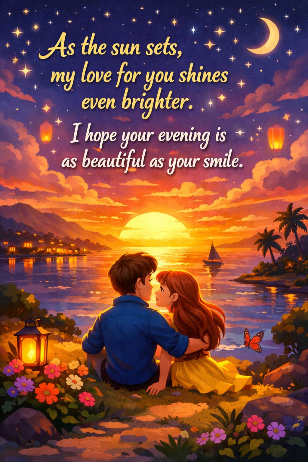 - “As the sun sets, my love for you shines even brighter. I hope your evening is as beautiful as your smile.”