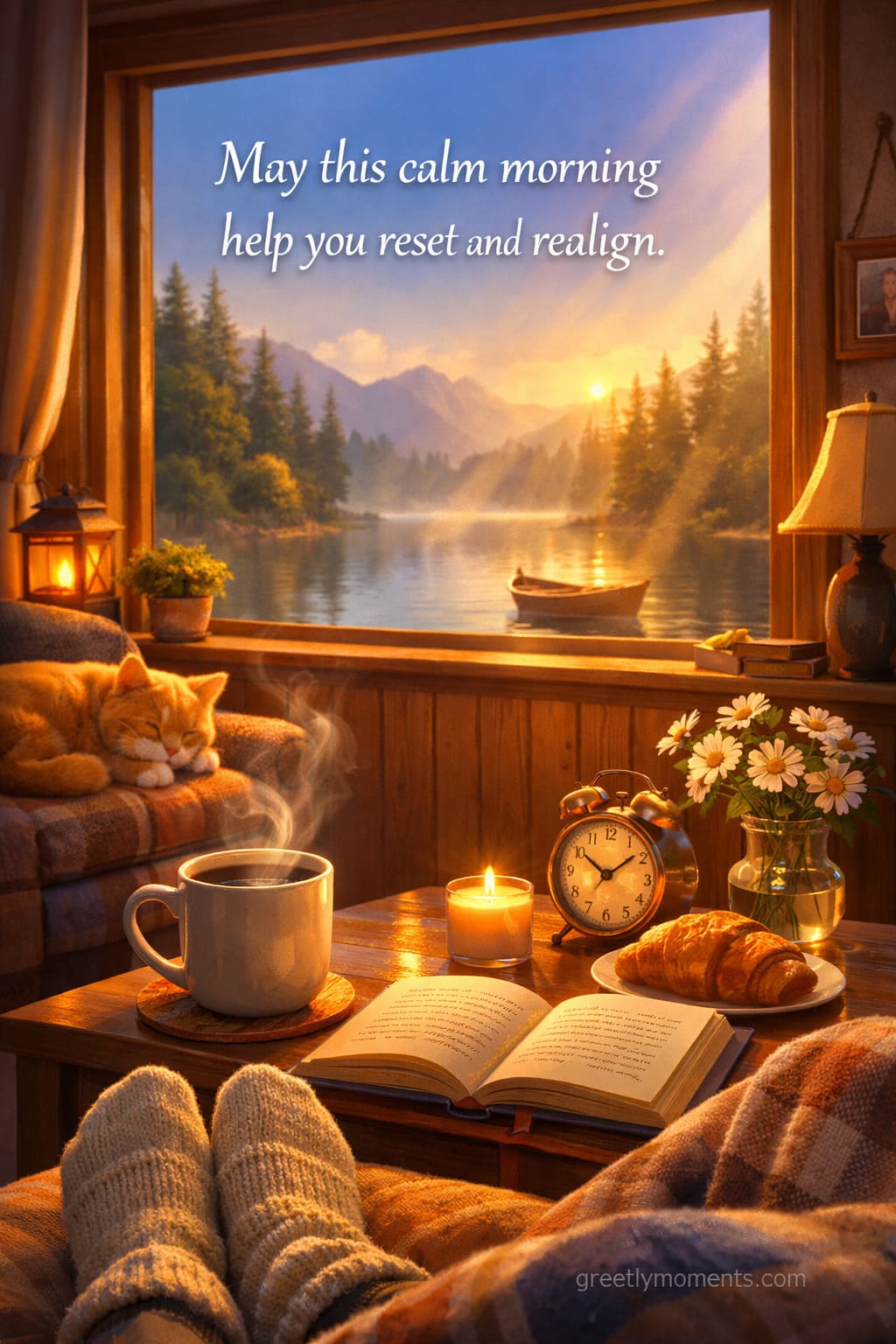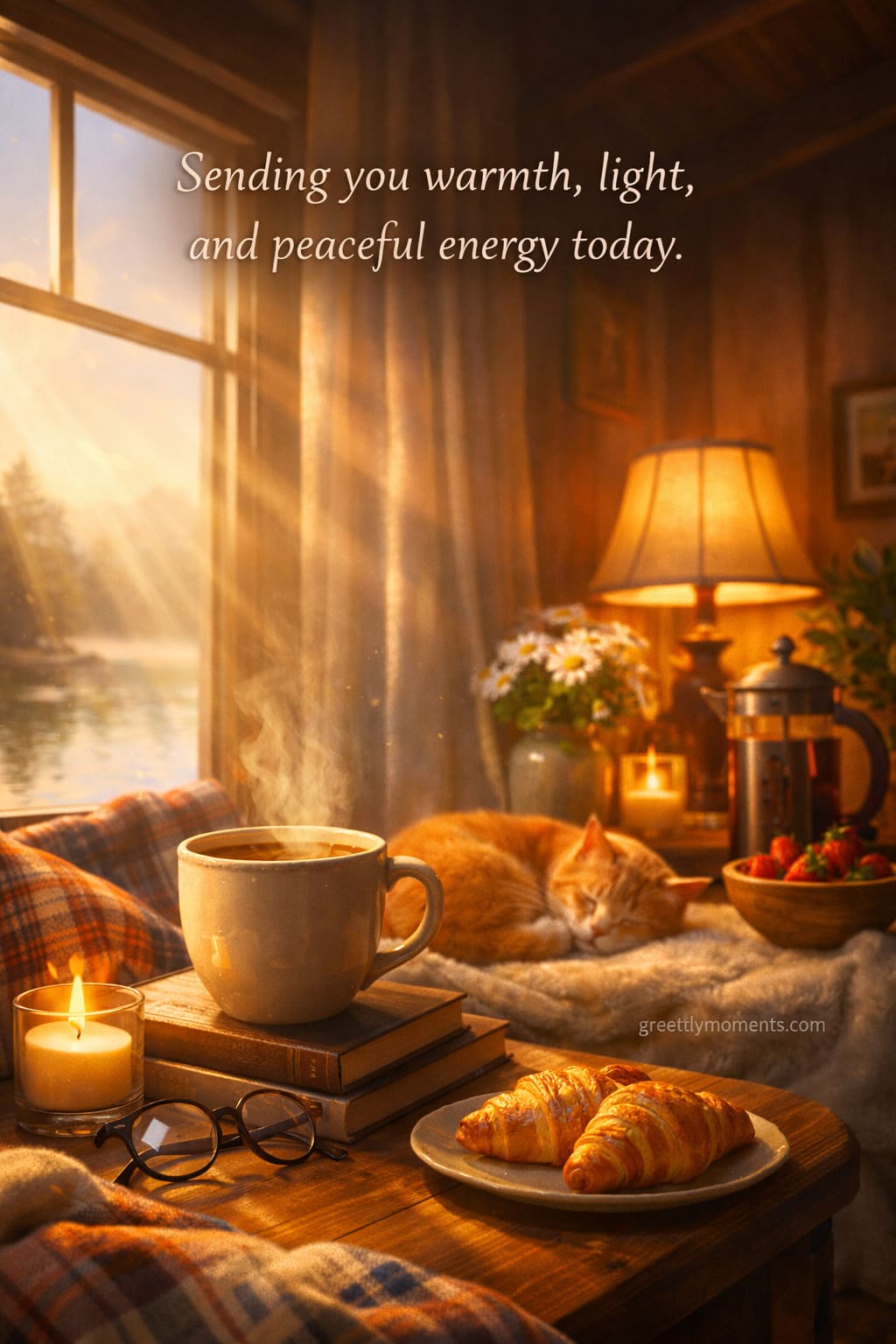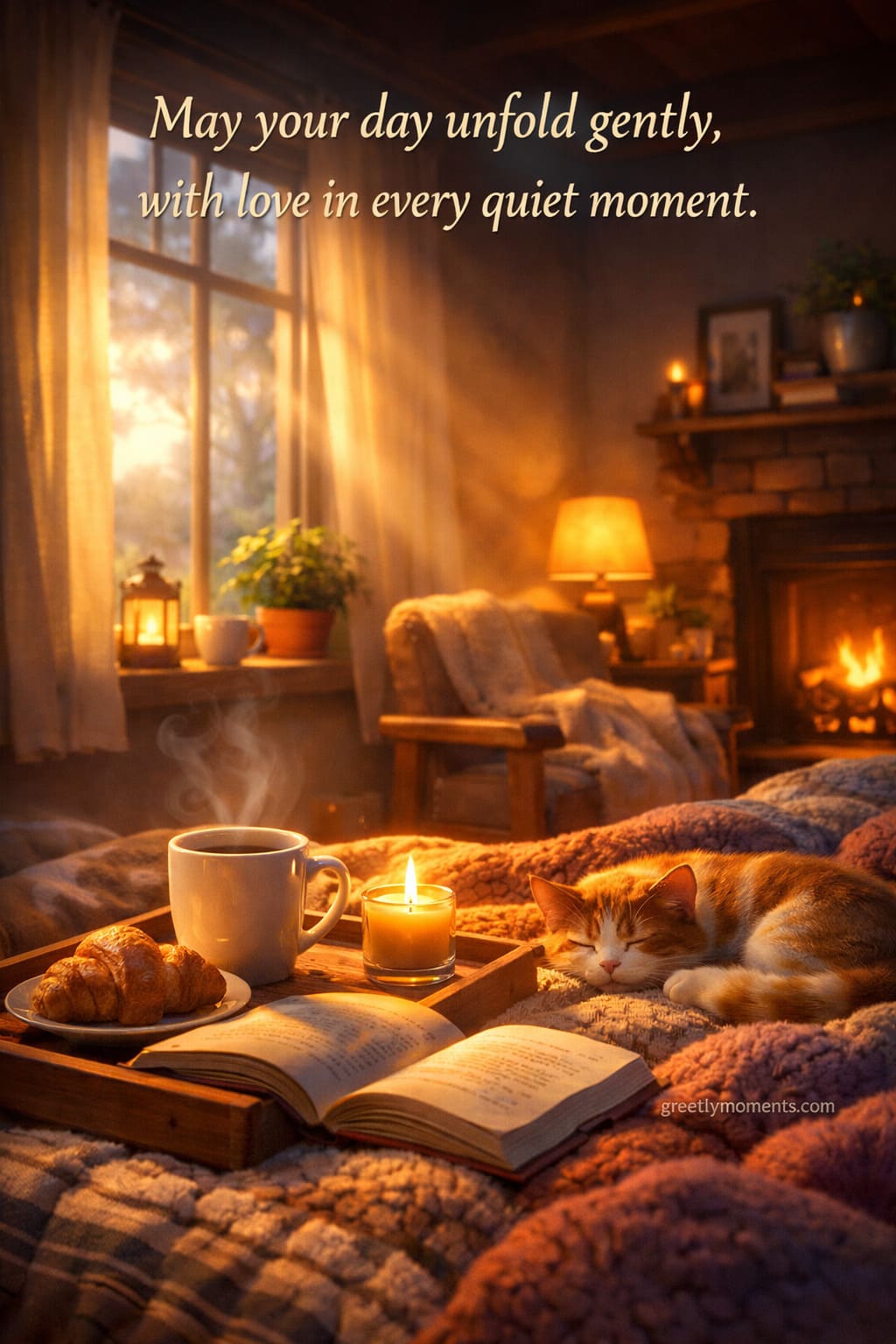 Pair them with soft visuals — warm blankets, sunrise light, autumn leaves, a steaming cup of tea, candles by the window. The words feel even stronger when they sit next to a peaceful image.