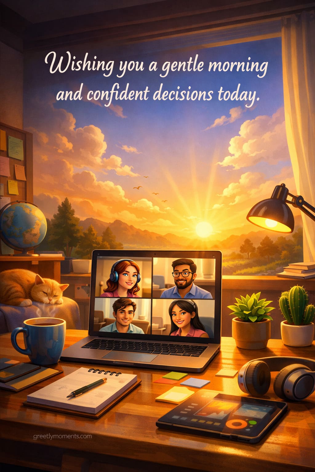 As someone who truly loves digital postcards and small daily rituals, I’ve seen how a warm morning message can instantly lift the mood of a remote team. It’s not about big speeches — it’s about human presence, kindness, and the feeling that someone on the other side of the screen genuinely cares.
