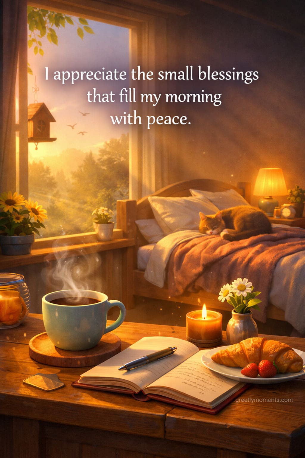 - I appreciate the small blessings that fill my morning with peace.