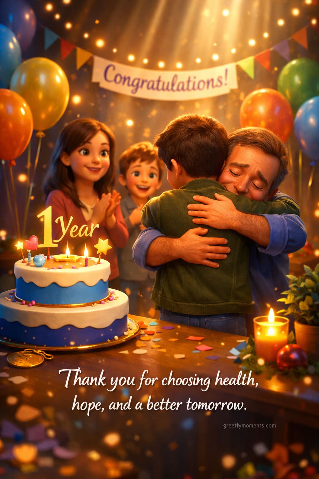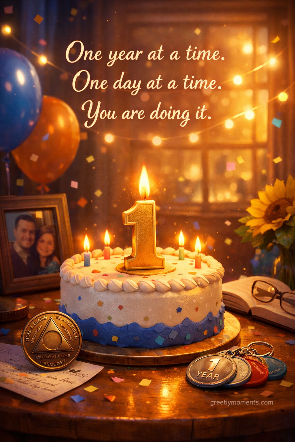 For example: “I am so proud of the work you’ve done this year. It hasn’t been easy, but you’ve faced every challenge with courage. Our family is stronger because of your strength. Happy Sobriety Anniversary — we love you.”