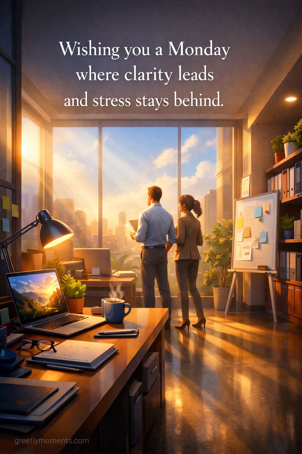 - Wishing you a Monday where clarity leads and stress stays behind.