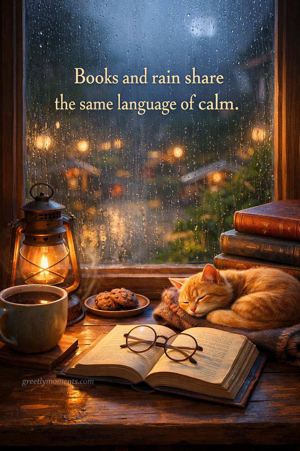 Rainy mornings slow time down. They invite us to breathe deeper, read longer, and feel more. This is the perfect mood for cozy postcards, gentle quotes, and small wishes that say: “Stay here a little longer.”