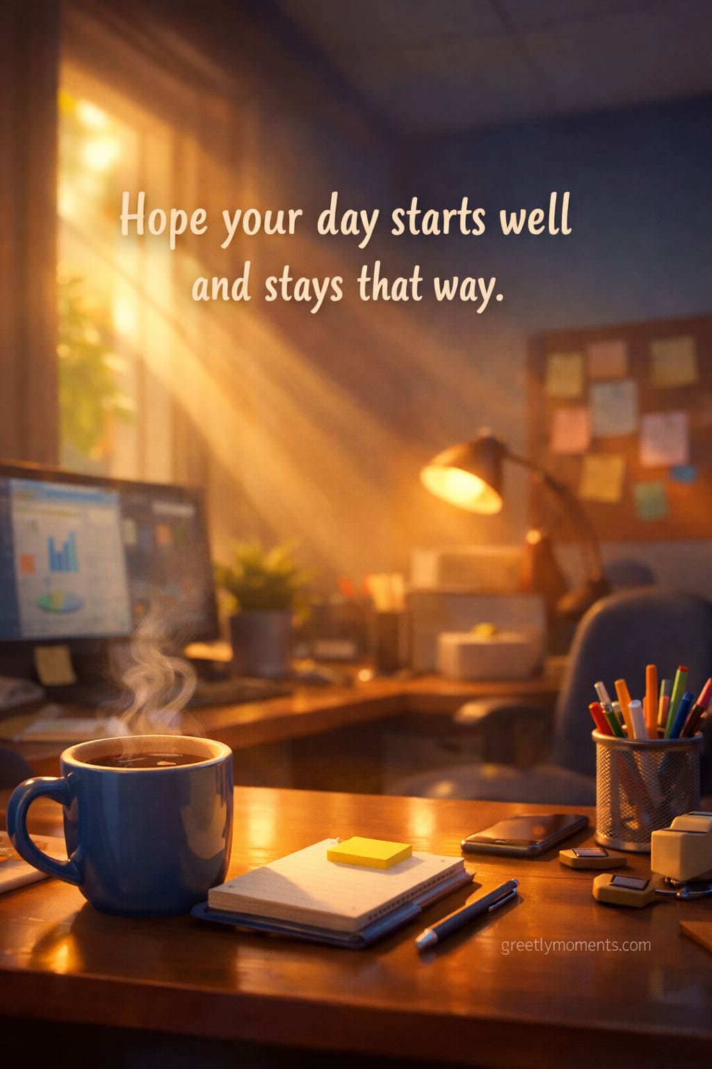 Below is a curated collection of 24 good morning wishes that feel natural, professional, and pleasant — perfect for messages, emails, chats, or greeting cards at work.