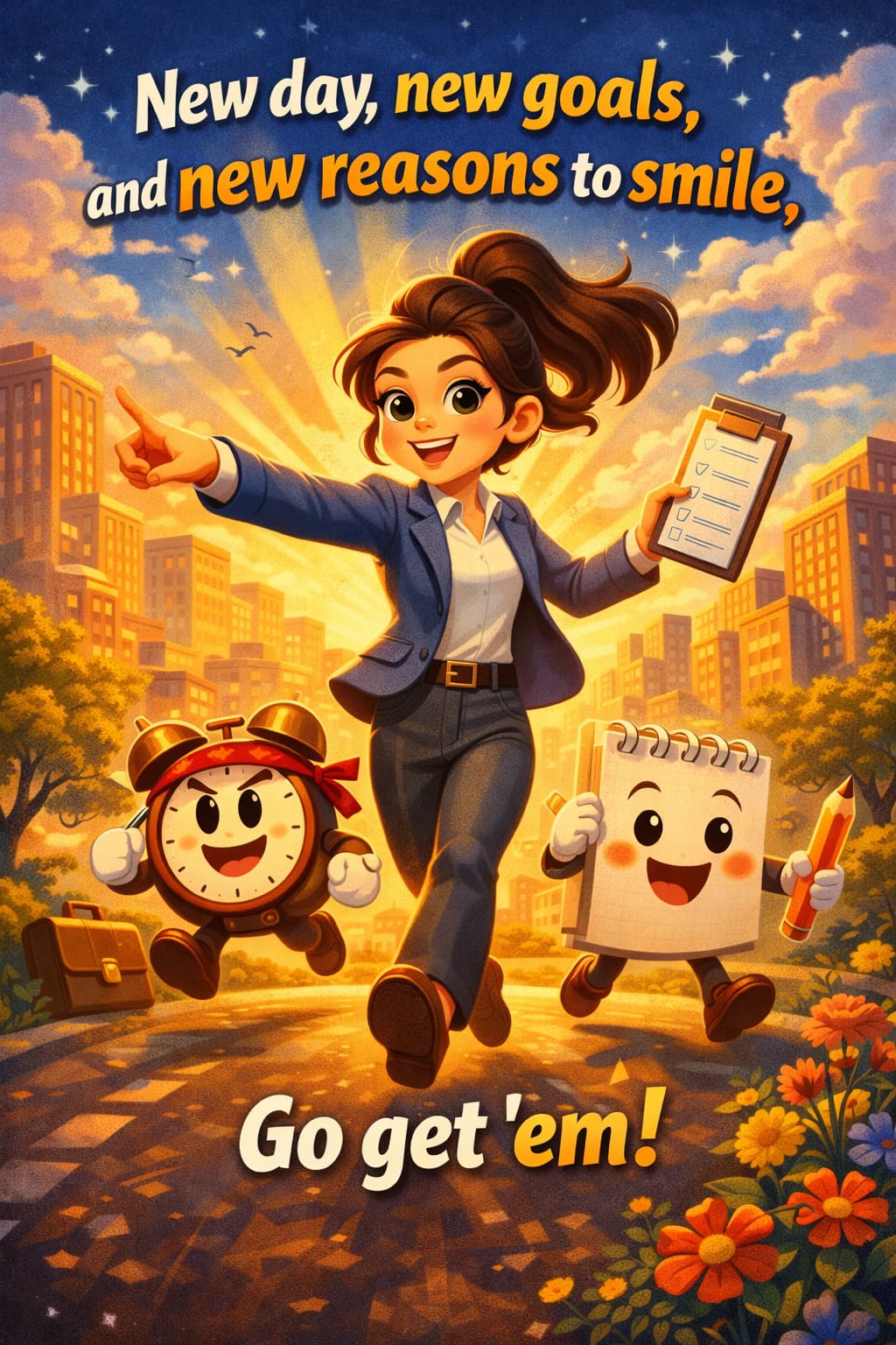 - “New day, new goals, and new reasons to smile. Go get ’em!”