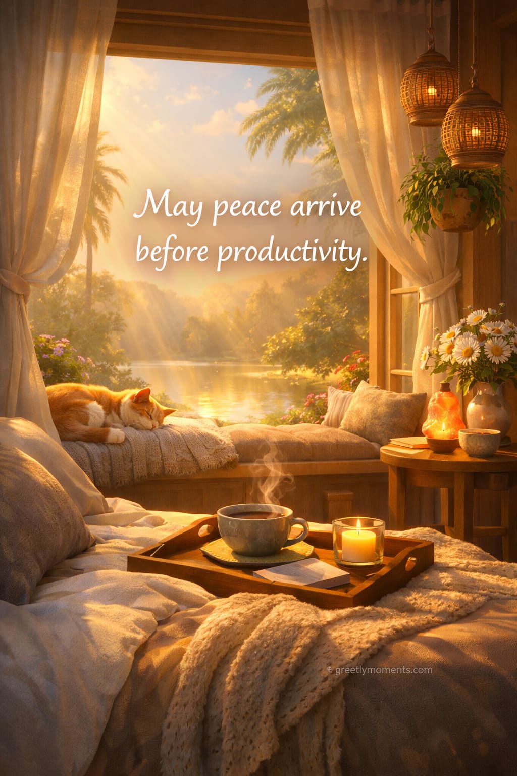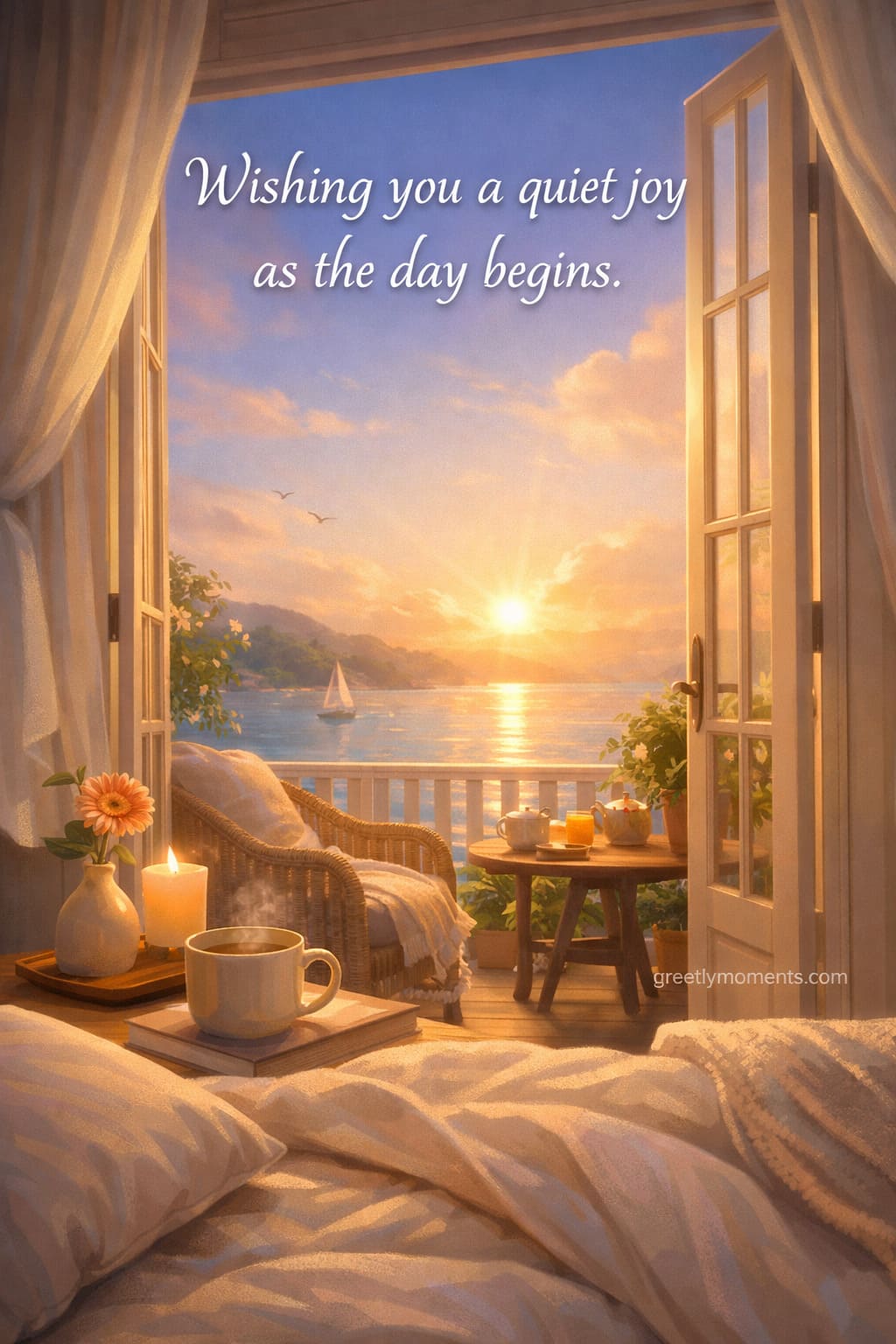 This collection was created for those mornings when you want to breathe before the world asks anything of you. These wishes pair perfectly with cozy aesthetic postcards, pastel visuals, minimal designs, and gentle typography. Save them, share them, or send one to someone who needs a softer start today 🌤️