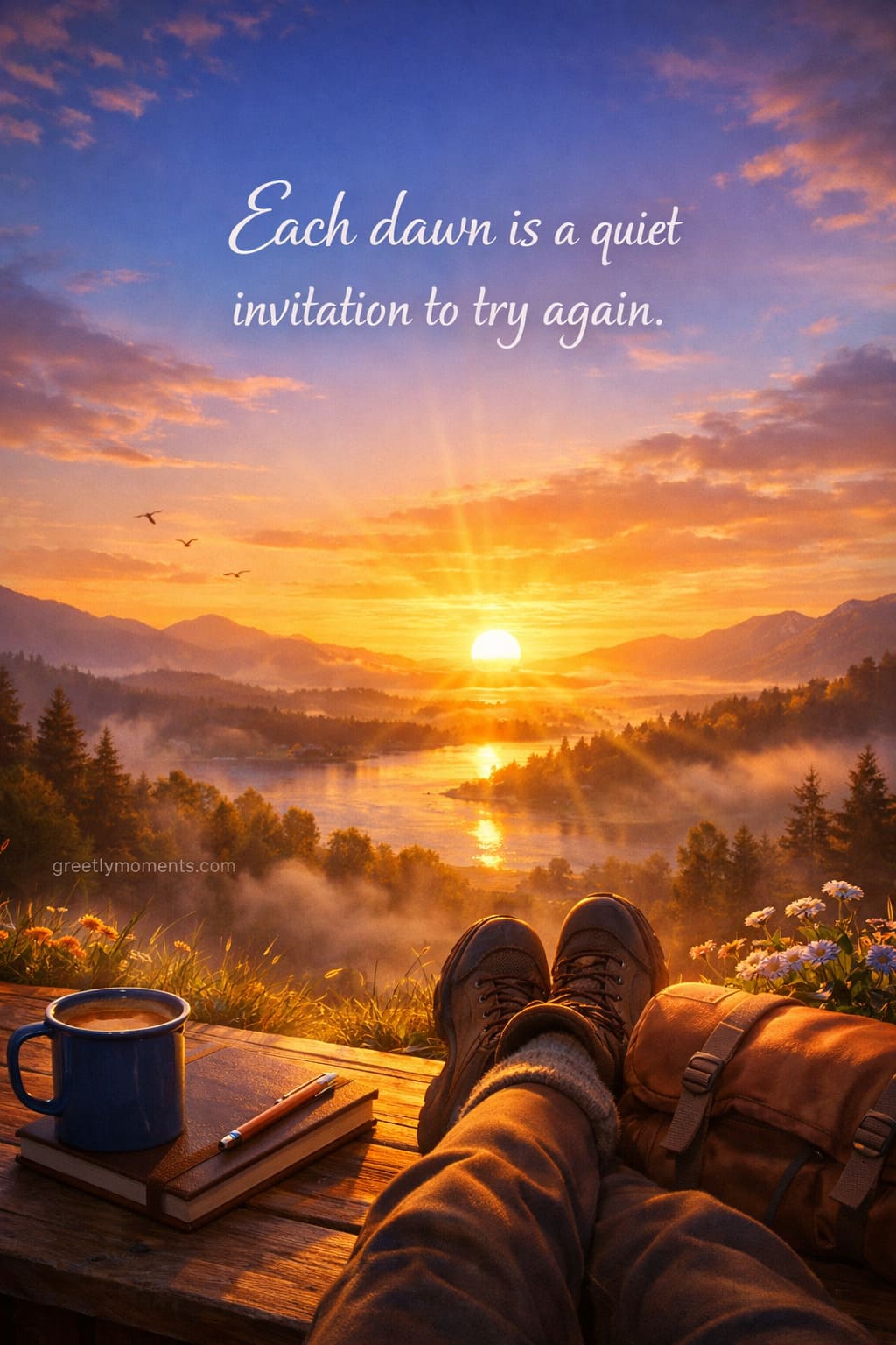 - “Morning light carries the kindness we forgot to give ourselves.”