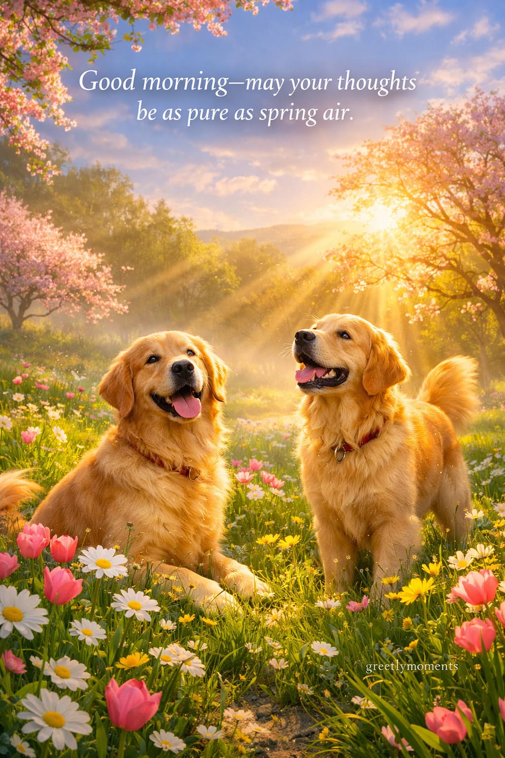 1. “Good morning—let your heart run free like a Golden Retriever in a spring meadow.”