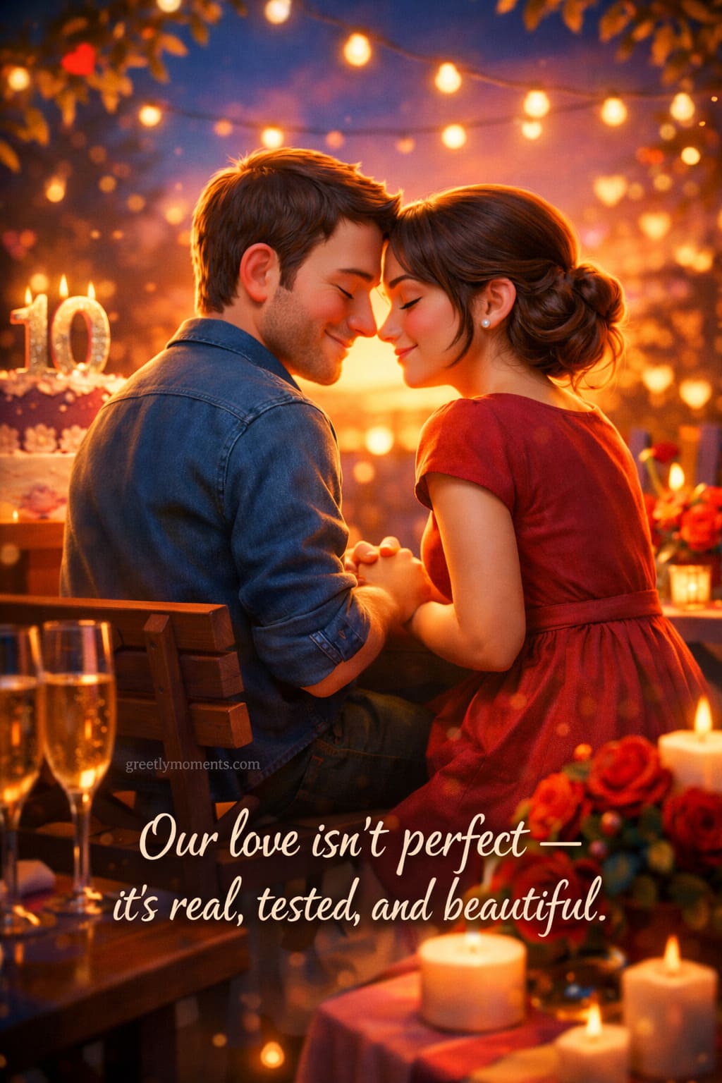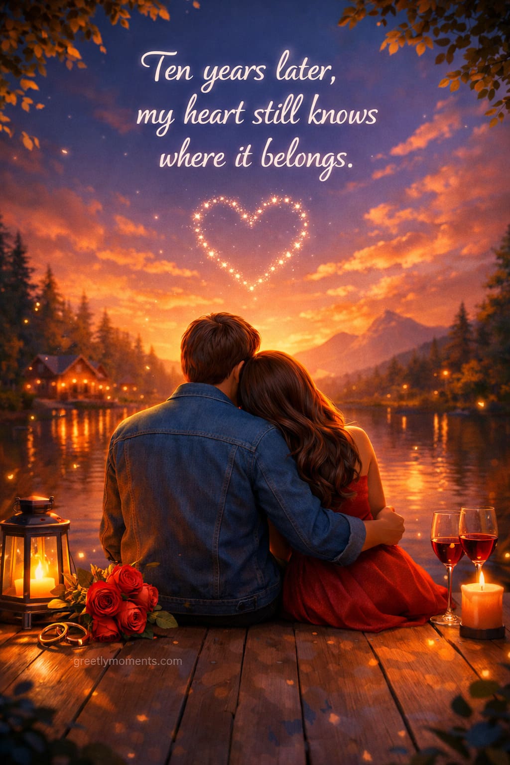 I’ve always felt that the best anniversary messages don’t try to impress — they try to tell the truth gently. After ten years, love isn’t loud. It’s steady. It’s choosing each other even on quiet days.