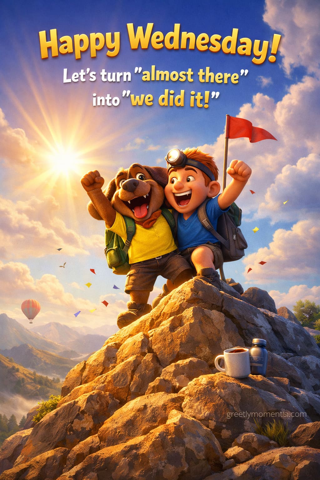 21. “Happy Wednesday! Let’s turn ‘almost there’ into ‘we did it!’”