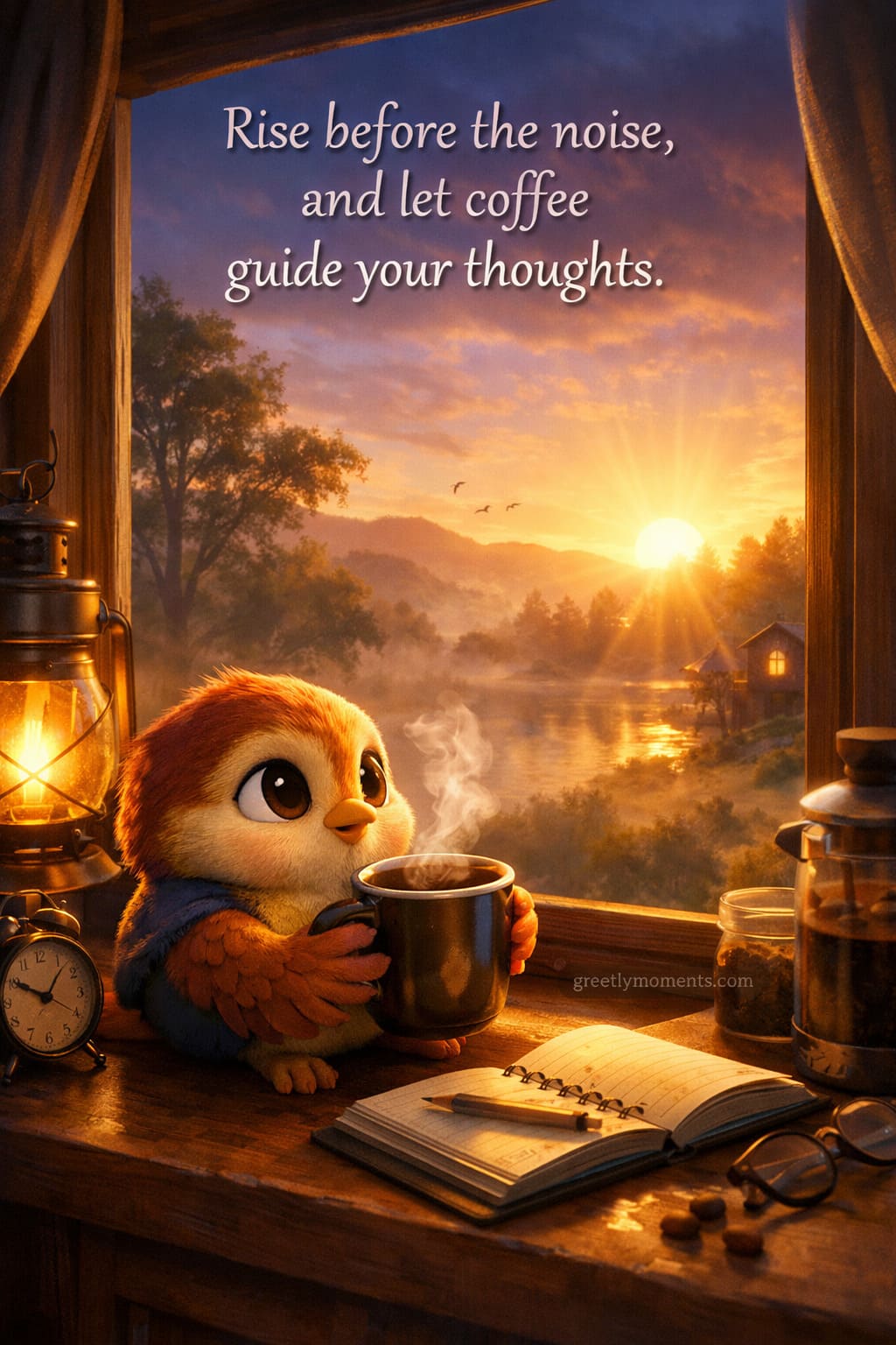 5. “Rise before the noise, and let coffee guide your thoughts.”