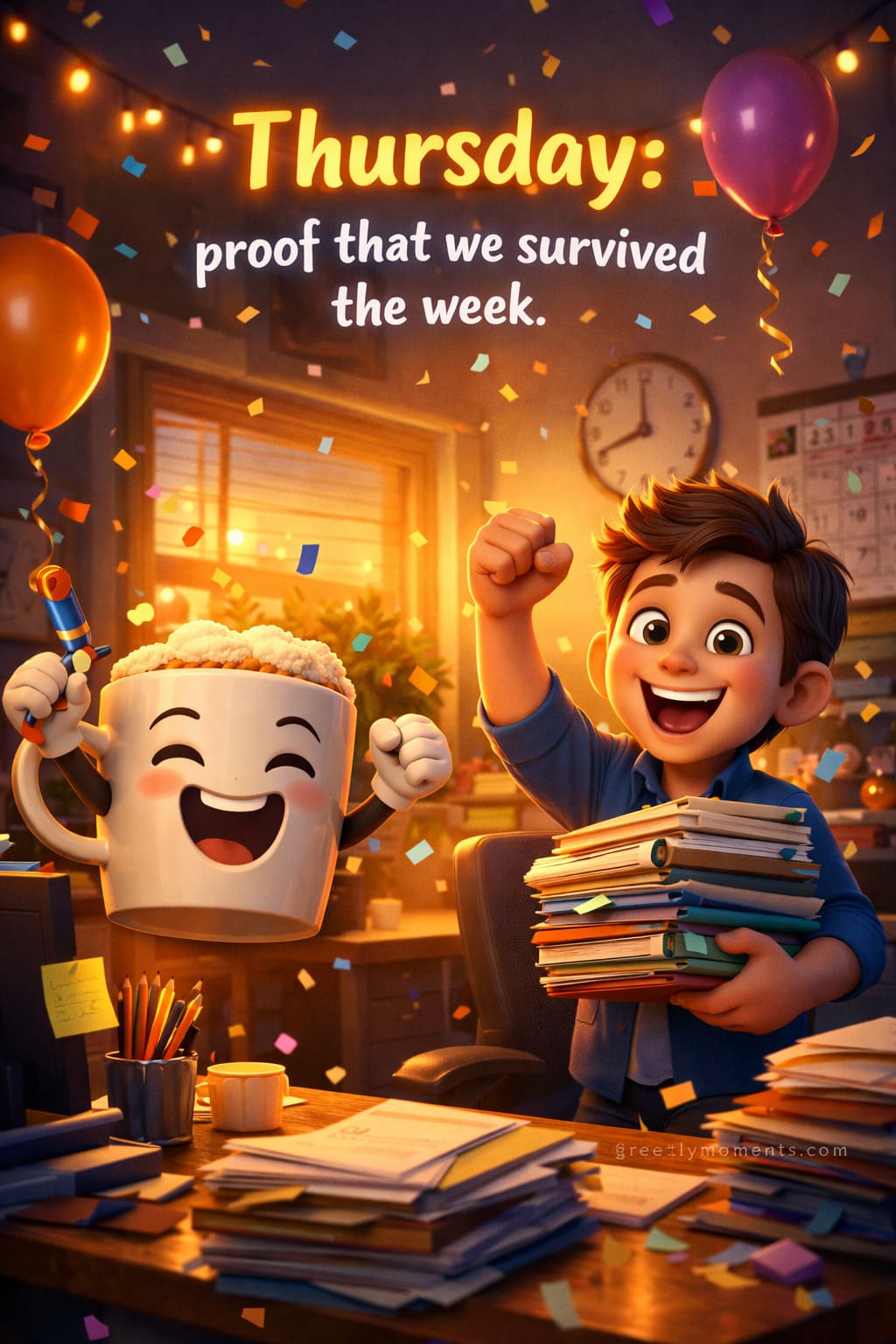 - “Thursday: proof that we survived the week.”