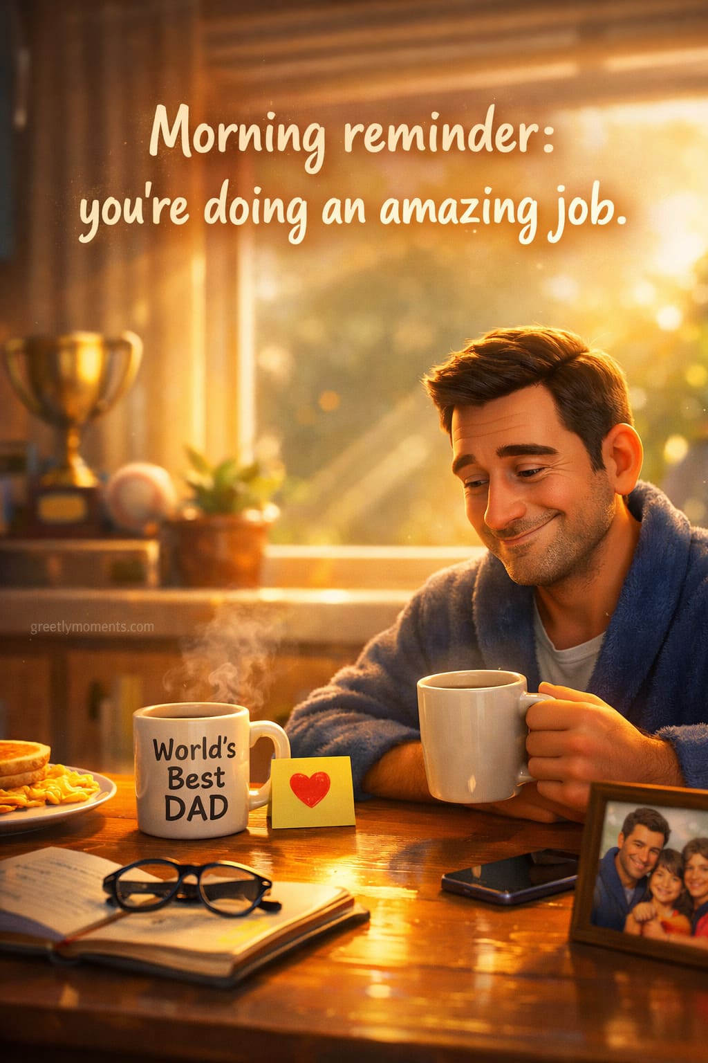 Sometimes, the most powerful words are the simplest ones. Saying “I’m proud of you” doesn’t need a special occasion — mornings are enough. If you can make your dad feel seen before his day begins, you’ve already done something meaningful.