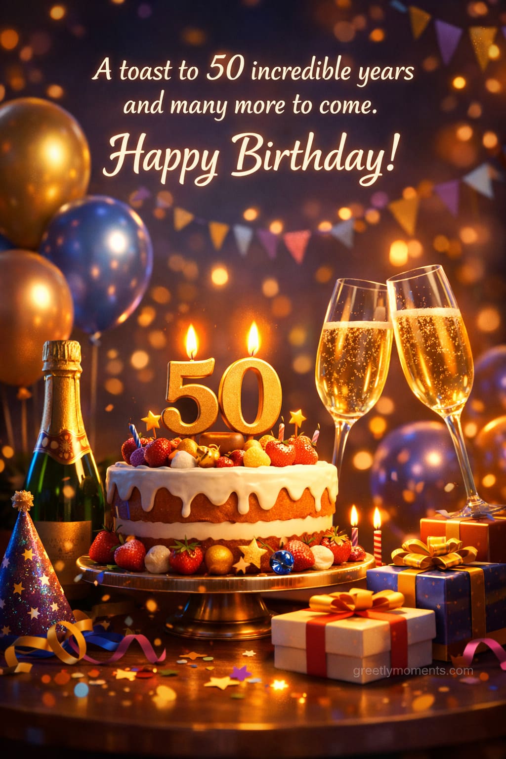 - “Wishing you health, happiness, and endless joy on your 50th birthday!”