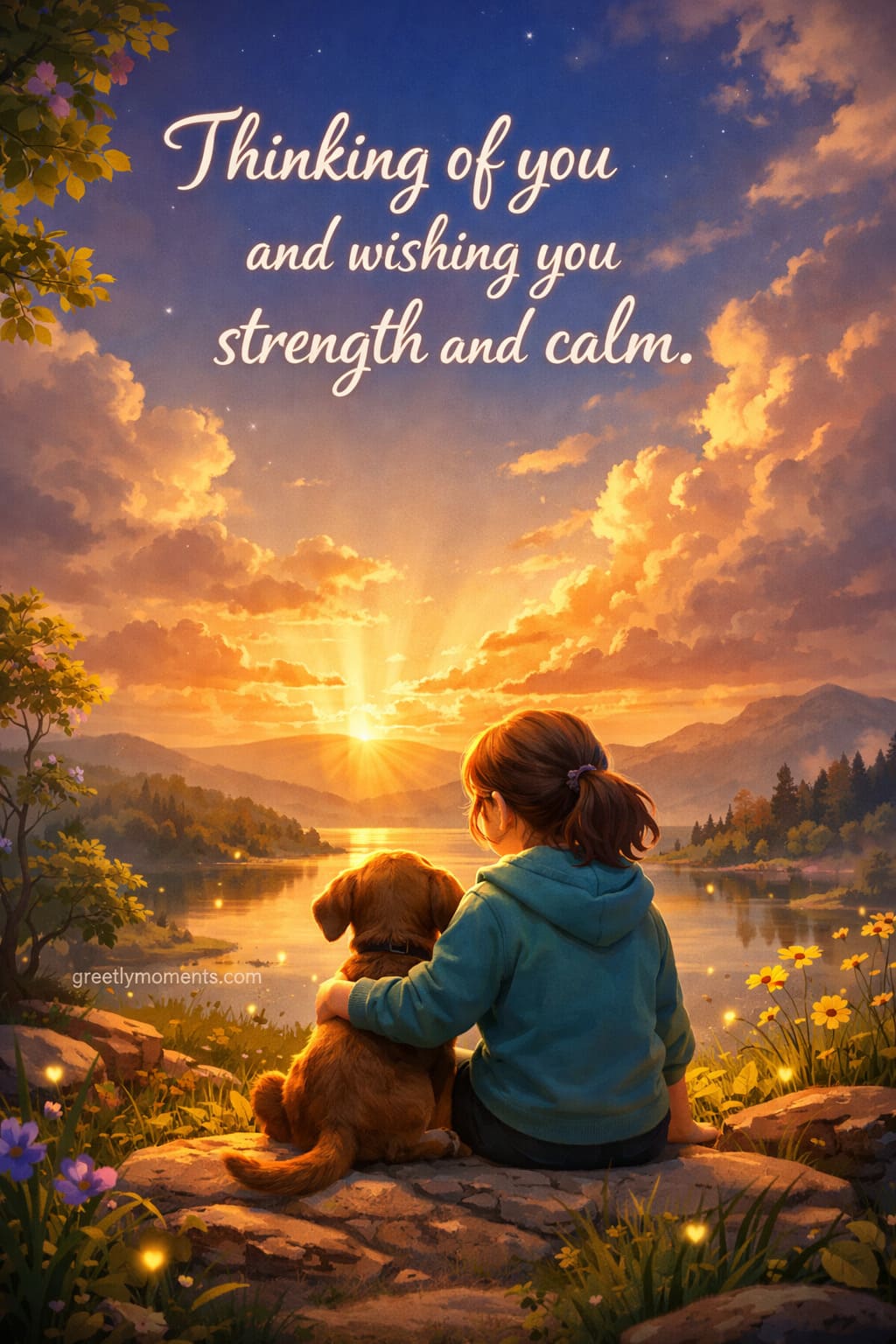 - “Thinking of you and wishing you strength and calm.”