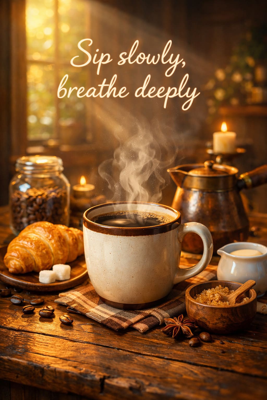 Here are a few soft, cozy wishes that pair perfectly with rustic coffee visuals: