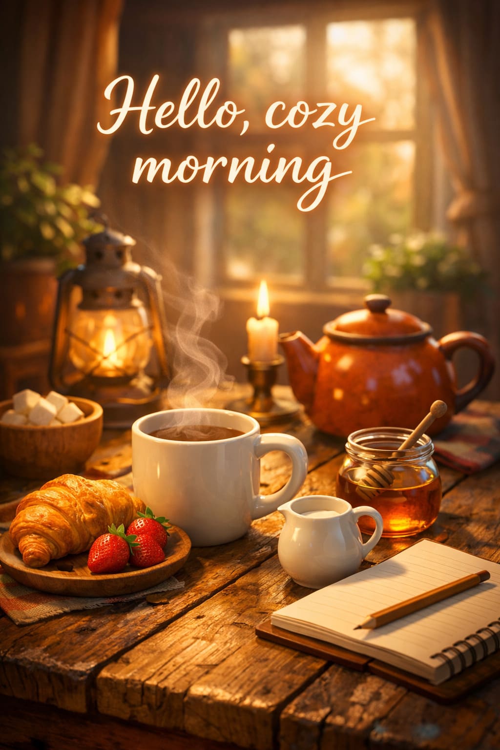 - Perfect for morning greetings, cozy quotes, and shareable images
